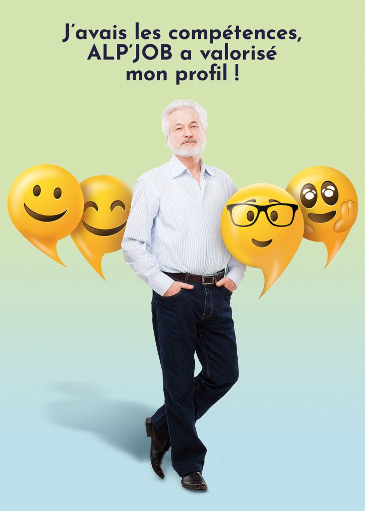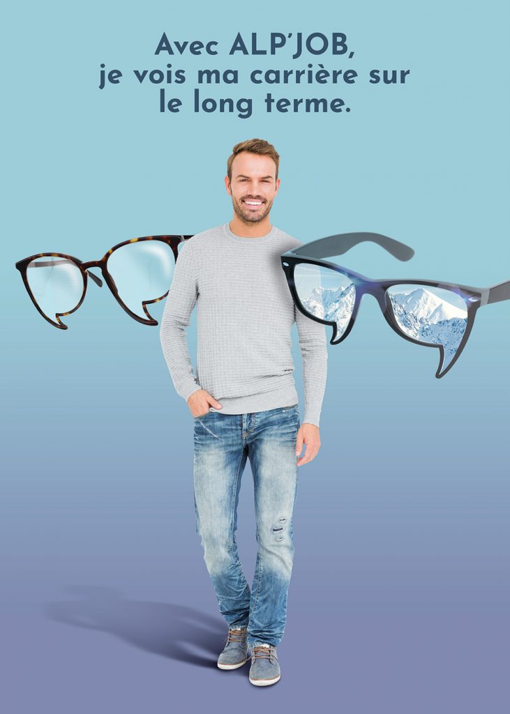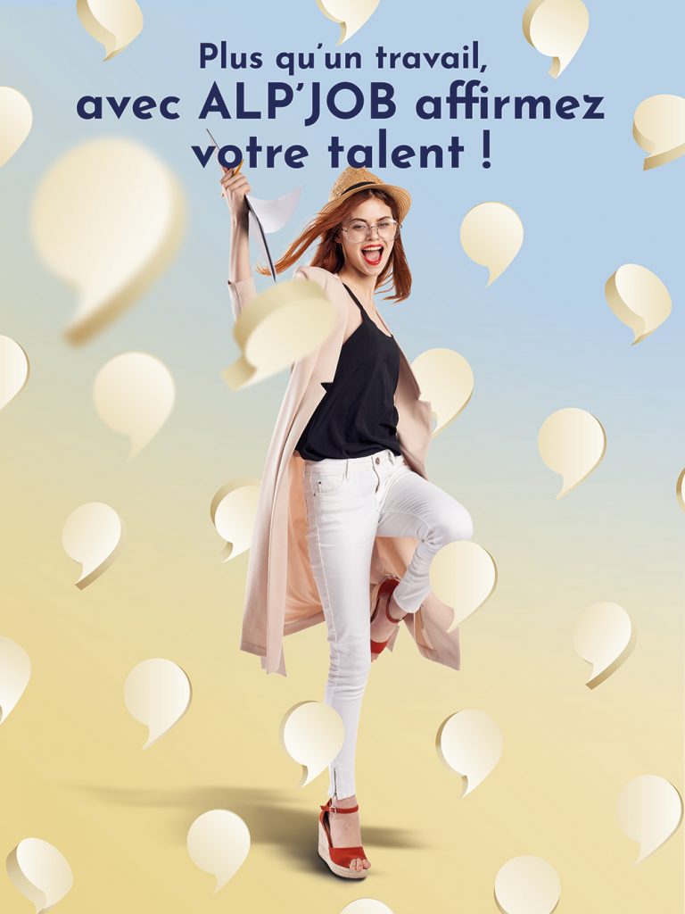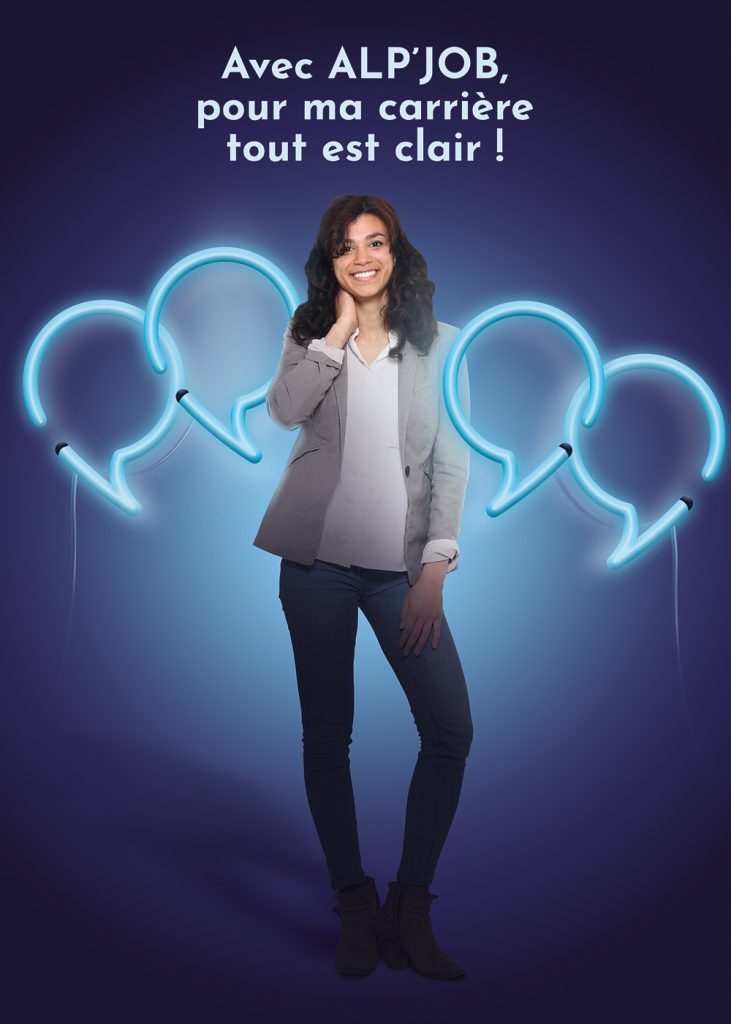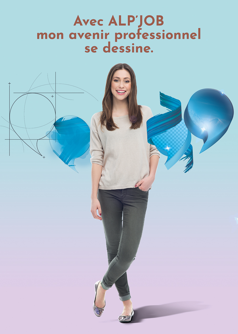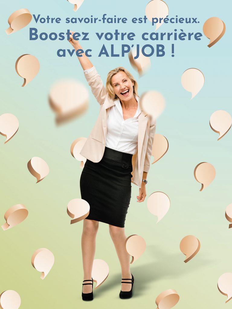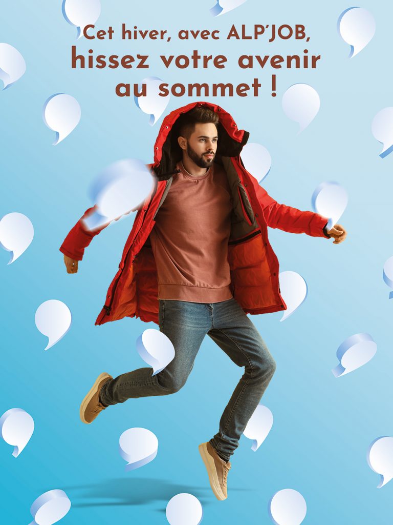 The Alp’Job logo includes an apostrophe that makes the link between the region (the Alps) and work. Symbol of human connection and attachment to the territory, it also makes the logo unique.