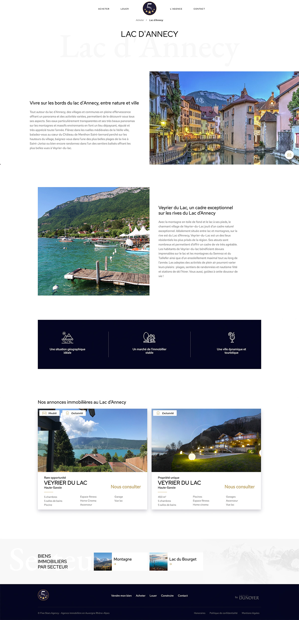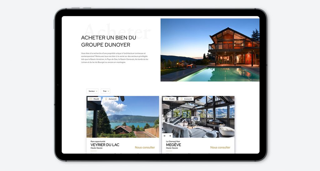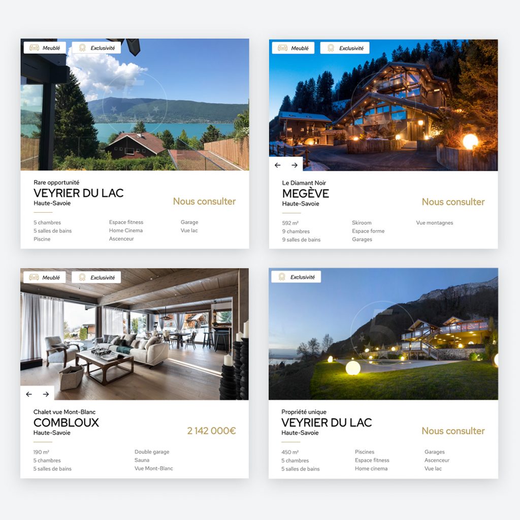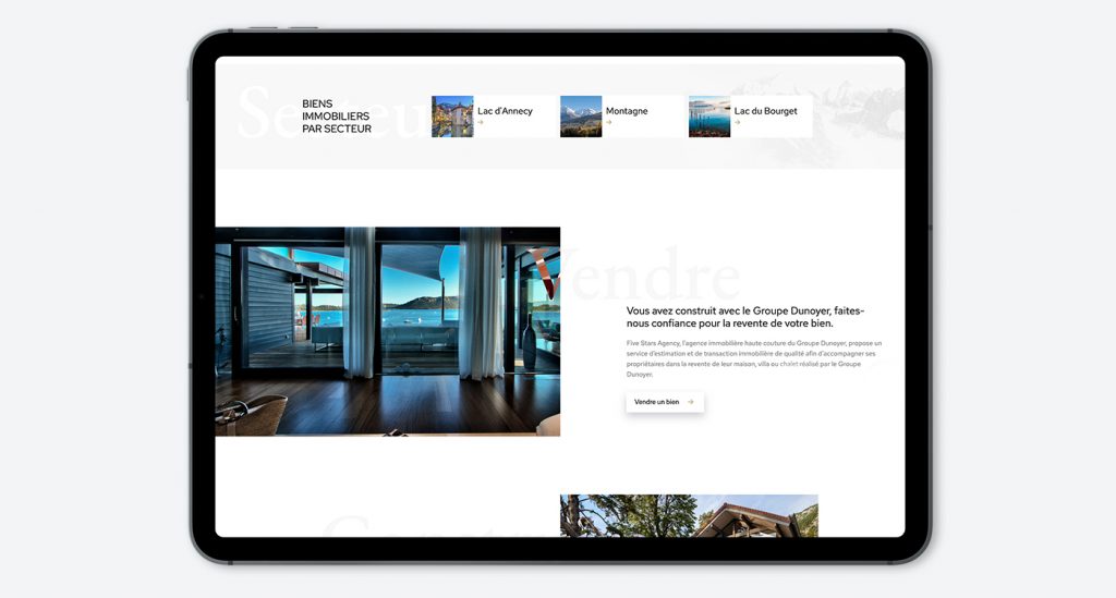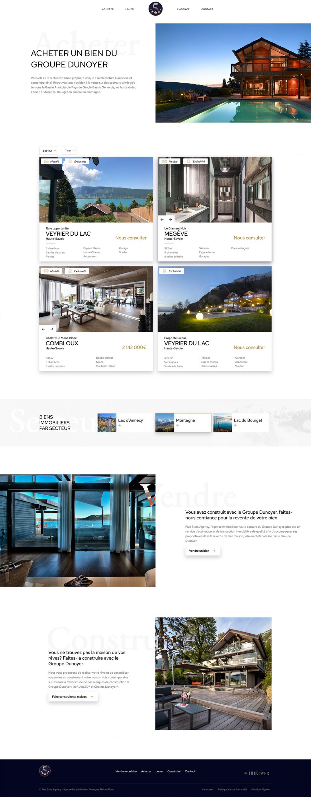 Five Stars Agency is a luxury brand of Groupe Dunoyer which sells and rents exceptional chalets. They asked us for a platform to present their goods and be contacted by interested people.